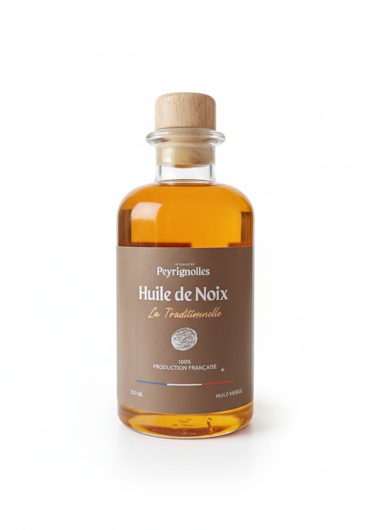 Huile de noix du Périgord au caractère affirmé.